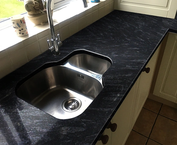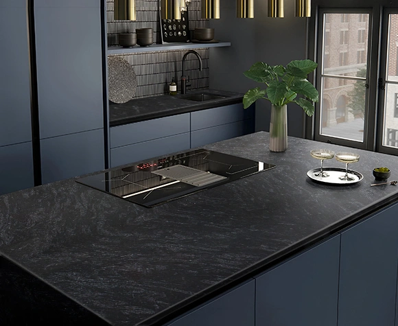 Markino Black kitchen countertop exudes bold sophistication, making it a standout feature in any kitchen. Its deep, luxurious black surface is not only visually striking but also incredibly durable, designed to withstand daily use while maintaining its elegant appearance. The subtle veining in the stone adds a touch of refinement, making it a versatile choice for both modern and traditional kitchen designs.
