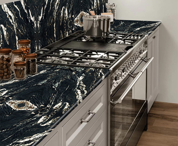 Titanium Black countertops offer a sleek, modern look with their deep, dark finish and smooth surface. They are exceptionally durable, making them perfect for handling daily kitchen use. Ideal for adding a touch of contemporary elegance to your cooking space.