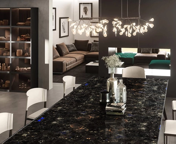 Volga Blue tabletops bring a vibrant and sophisticated touch to any space with their rich blue hue. These surfaces are both stylish and durable, ideal for making a statement while withstanding daily use. Elevate your decor with the striking presence of Volga Blue