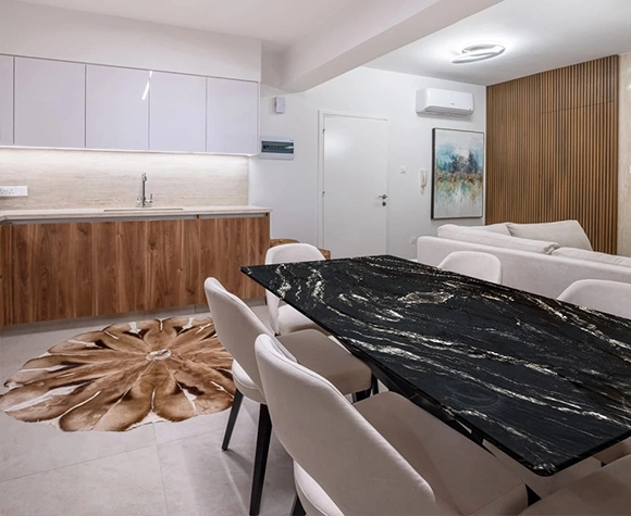 Titanium Black tabletops provide a sleek, contemporary look with their rich, dark finish and smooth surface. Highly durable, they stand up to daily use while maintaining their elegant appearance. Perfect for adding a touch of modern sophistication to any space.